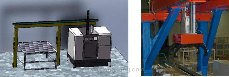 以上仅简单介绍为立式加工中心上下料原理性动作过程,还有其它车床、磨床和冲床等设备设计了上下料机器人。